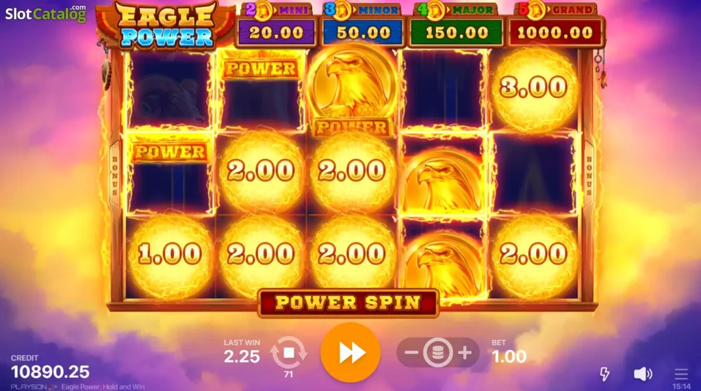 Eagle Power: Hold and Win slot bonus features include jackpots, multipliers, and expanding wilds. The slot free spins round enhances payouts and often leads to big rewards. Players also discover the coin drop feature, which triggers extra respins and raises winning chances. Understanding how to activate bonus in Eagle Power: Hold and Win slot is key to steady progress.